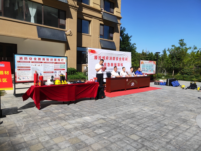 中秋國慶雙節(jié)將至,為進(jìn)一步提升雙節(jié)期間消防應(yīng)急救援能力,確保滕投集團各下轄小區(qū)度過一個安全穩(wěn)定、歡樂祥和的佳節(jié)。9月21日下午,集團萬德物業(yè)公司聯(lián)合滕投悅府物業(yè)服務(wù)中心開展第三季度物業(yè)消防綜合演練活動?;顒友埩吮毙两值牢幕飞鐓^(qū)領(lǐng)導(dǎo)、滕州藍(lán)天救援隊救援人員、集團下轄14個物管項目經(jīng)理和安全