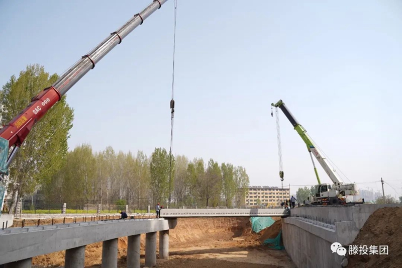 4月9日,在新華橋建設現場,幾十名施工人員正配合大型機械進行預應力空心橋板吊裝施工,這標志著新華西路橋梁工程由下部基礎結構施工全面轉入橋面施工。據了解,新華橋為新華西路跨馮河橋梁項目,該橋長60米,寬35米,橋梁總面積約2100平方米,工程總投資約1700萬元,橋梁上部結構采用裝配式預應力混凝土簡支空心板,下部結構