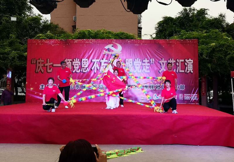 當天,滕投集團和辛莊社區聯合為社區居民奉獻了一場精彩紛呈的“慶七一 頌黨恩 不忘初心跟黨走”文藝匯演。演出活動在聲勢浩蕩的“軍鼓”表演中拉開帷幕,省級獲獎節目《空竹表演》、舞蹈《祝福祖國》、小合唱《紅梅贊》、竹笛獨奏《揚鞭催馬運糧忙》等節目將活動持續推向高潮。