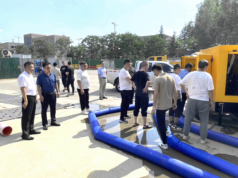 為應對防汛抗旱及臺風等惡劣天氣的影響,7月7日,集團自吸式車載移動泵站投入到項目使用。各項目部迅速組織相關技術人員學習泵站操作規范,并積極開展了實操演練活動。集團副總經理李正春參加活動。