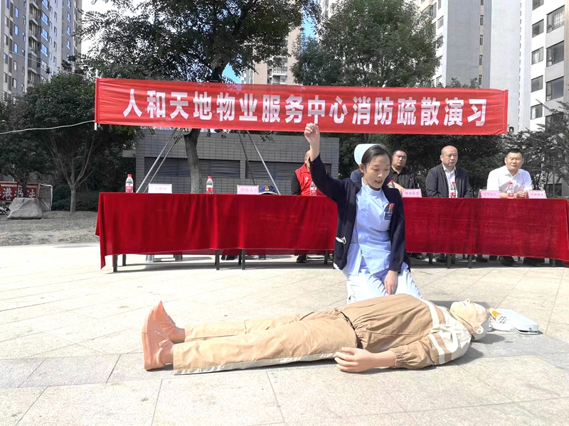 活動當天,人和天地物業服務中心組織工作人員開展了火情處置消防演練,并邀請到市消防大隊、財貿醫院工作人員講解滅火器、消防栓、消防水帶等器材的使用方法和傷員急救知識。