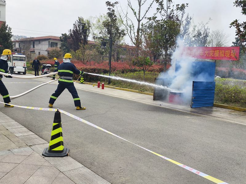 在應(yīng)急救援演練環(huán)節(jié),模擬了樓宇內(nèi)強(qiáng)電井起火人員被困的場景和車棚電動車自燃著火的場景。物業(yè)團(tuán)隊(duì)迅速啟動應(yīng)急預(yù)案,組織人員疏散、急救,使用消防器材進(jìn)行滅火,并與消防部門緊密配合,成功將火勢控制并撲滅。演練過程中,大家嚴(yán)格按照應(yīng)急預(yù)案進(jìn)行操作,展現(xiàn)出了良好的應(yīng)急反應(yīng)能力和團(tuán)隊(duì)協(xié)作精神。