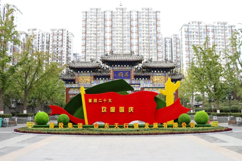 9月24日,滕投集團天行健發(fā)展公司在九州清晏老縣衙廣場布置的一座大型花壇綠雕吸引眾多市民駐足觀看,為廣場又增添了一道靚麗的獨特風景線。該花壇以“喜迎二十大 歡度國慶節(jié)”為主題,高5米、長16米,由一萬余株花卉綠植簇擁而成,層次分明,錯落有致。既有寓意“萬眾一心、欣欣向榮”的國慶菊,又有體現(xiàn)“永遠跟黨走、共建