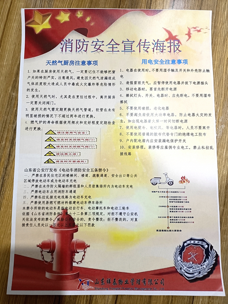 6月17日,為貫徹落實(shí)好集團(tuán)公司安全生產(chǎn)月工作要求,人和藍(lán)灣小區(qū)開(kāi)展消防安全主題活動(dòng)。人和商管公司、安全品控部和山東祥泰物業(yè)公司相關(guān)負(fù)責(zé)人參加。 活動(dòng)當(dāng)天,物業(yè)消防負(fù)責(zé)人員向詳細(xì)講解了滅火器、消防栓及消防水帶等器材的使用方法,組織開(kāi)展了火情處置消防演練,并在小區(qū)發(fā)放安全宣傳單,切實(shí)讓全體物業(yè)