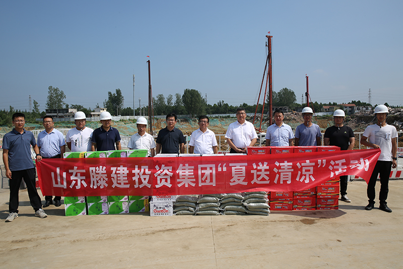 為維護廣大職工的職業安全和健康權益,傳遞集團公司對一線員工的關愛,營造良好的工作氛圍,有效改善一線職工夏季生產生活條件,7月19日,集團組織開展了2021年“送清涼、送安全、送健康”夏送清涼活動。 活動當天,集團董事長方玉新、總經理候欽軍深入到人和天地二期項目、滕投悅府項目、小崗區