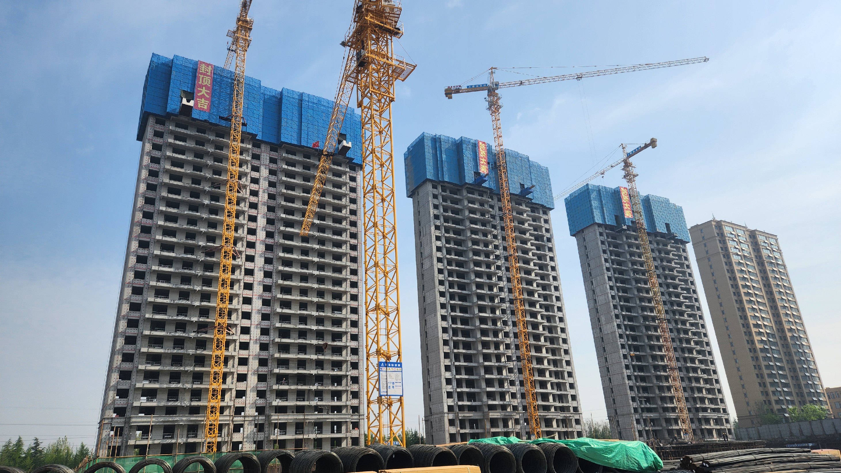 槐序時節,風華正濃。滕投悅府二期項目迎來了項目的首個重要階段性成果,15.16.19.14號樓依次完成了主體封頂施工。自2023年夏季項目整體進入土建施工階段以來,工程管理三部攜同總包單位、監理單位、跟蹤審計等悅府二期全體參見單位在集團公司的統籌規劃下,在其他兄弟部門的幫助配合下克服了整體市場環境及房地產政策調整帶